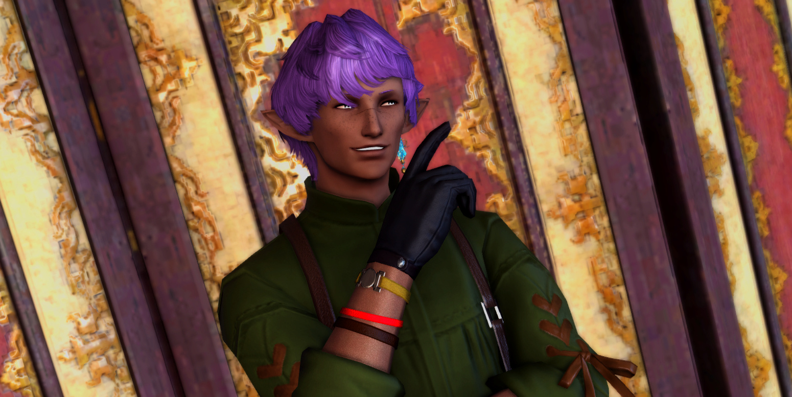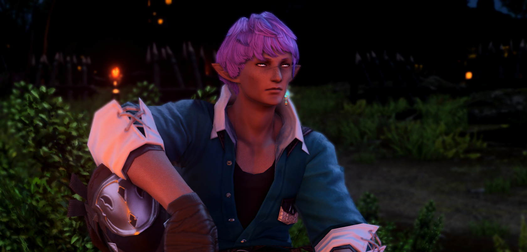 If you spend enough time in Limsa, you’re bound to hear someone talk about a purple-haired privateer named after a bird, smelling of airships and gunpowder. Peregrine’s home is in the sky, but on the days he manages to find land again, he’s always got a story to tell. He's a soft-spoken yet earnest man who'll do his best to make your day better than it was when you arrived, whether that's through a story, a stiff drink, or a little piece of artwork.